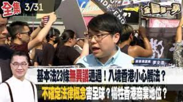 基本法23條''無異議''通過! 入境香港小心觸法?''不確定法律概念''害全球? 犧牲香港商業地位?【全國第一勇(2024)